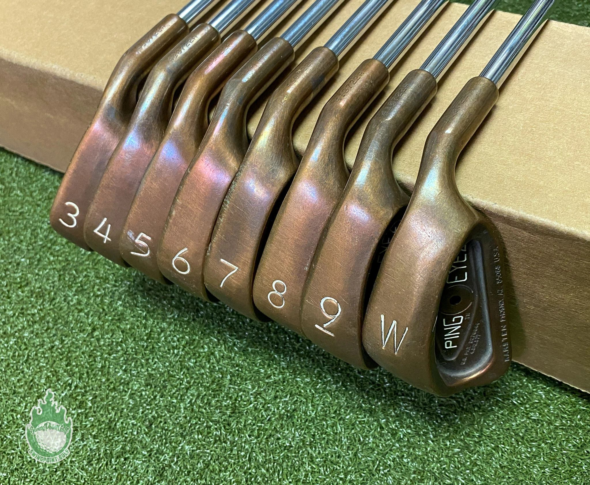 Up for sale is a Used Ping RH Black Dot Eye 2 Beryllium Copper Irons 3-PW Micro Taper Stiff Steel Set (8 Club Set)