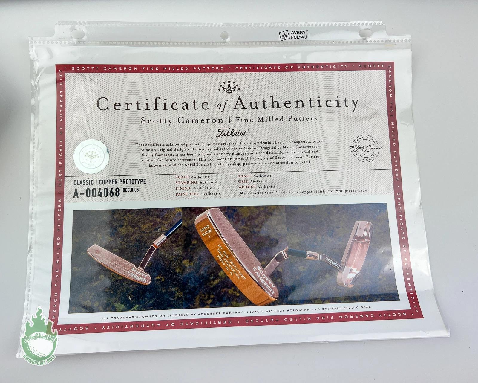 Up for sale is a Used Right Handed Titleist Scotty Cameron Copper Classic I 1st Run Prototypes Tour Xperimental 200 pcs. Cu PL 35″ Putter Steel Golf Club With COA
